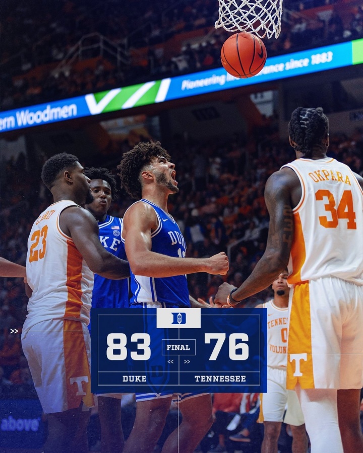 10月27日訊 NCAA季前賽,杜克大學(xué)以83-76戰(zhàn)勝田納西大學(xué)。此役,明年狀元候選、杜克大學(xué)前鋒卡梅隆-布澤爾表現(xiàn)優(yōu)異,打出了雙20的數(shù)據(jù),還在比賽中送出了一記炸裂的抓帽。