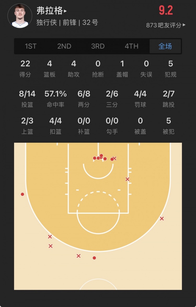 獨(dú)行俠狀元秀 庫珀-弗拉格 登場28.9分鐘