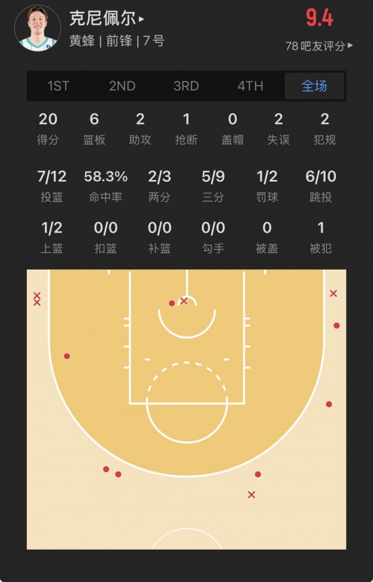 黃蜂4號秀 康-克尼佩爾 登場34.9分鐘