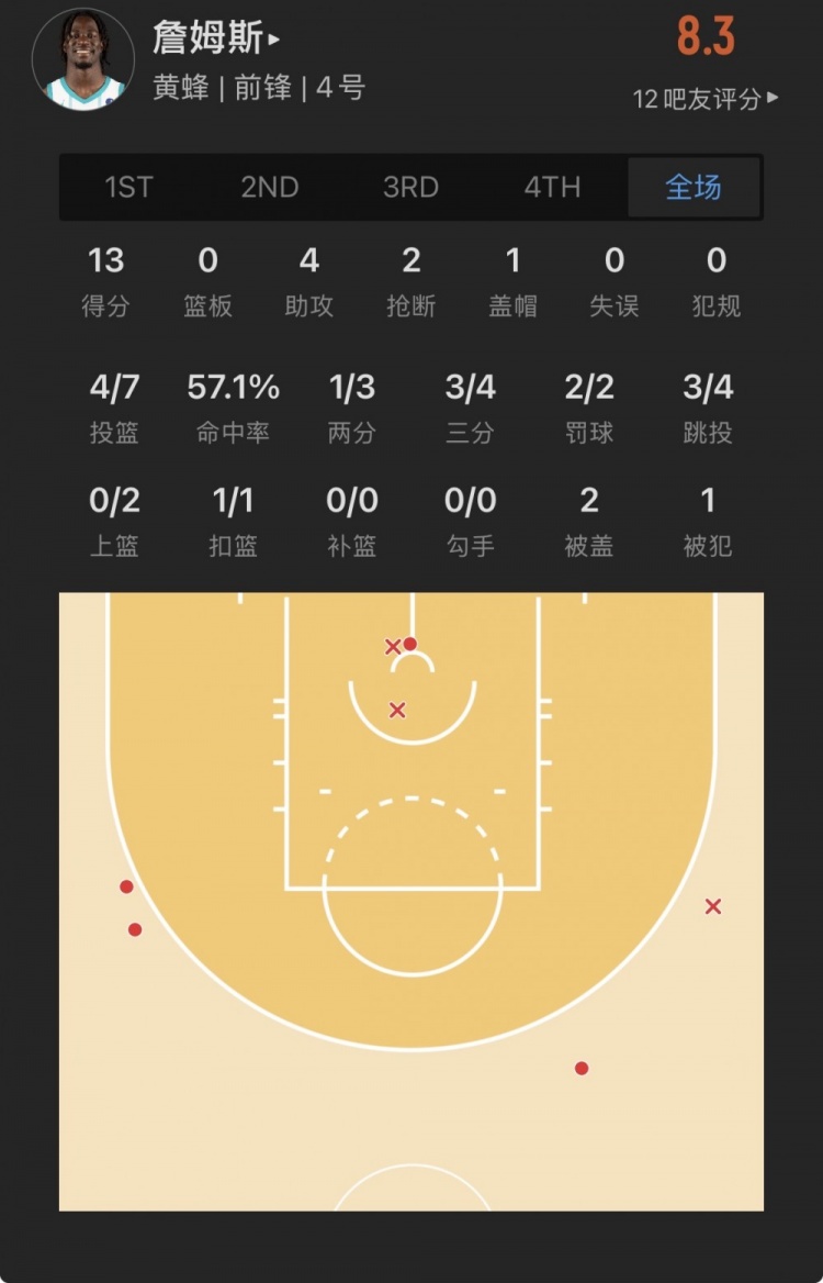 黃蜂33號秀 賽恩-詹姆斯 登場20.3分鐘