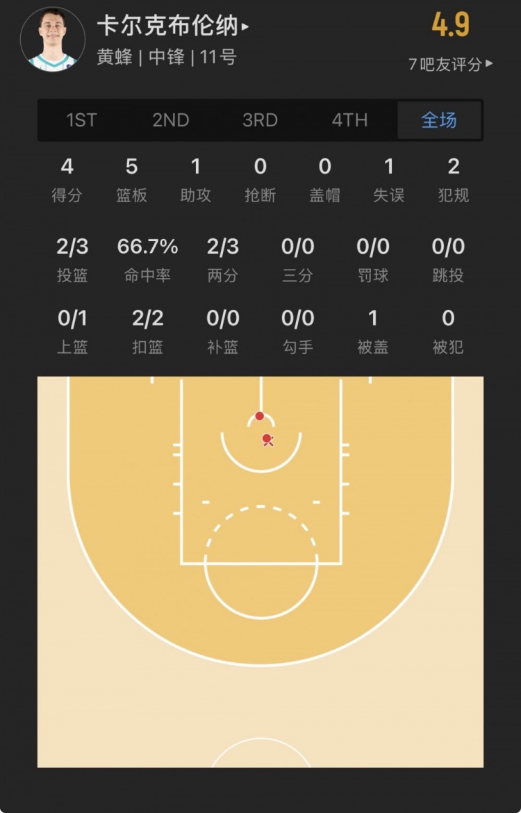 黃蜂34號秀 瑞安-卡爾克布倫納 登場22.1分鐘