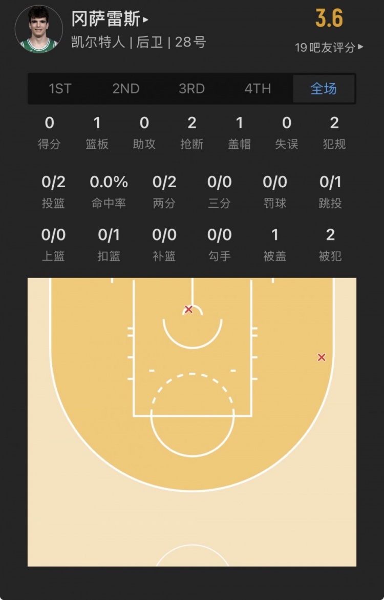 凱爾特人28號秀 烏戈-岡薩雷斯 登場18.4分鐘