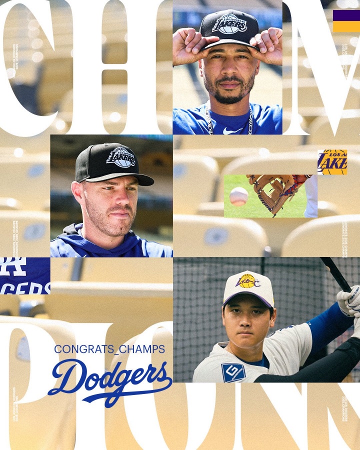 道奇同城球隊(duì)洛杉磯湖人賽后制作海報(bào)送上祝福。詹姆斯賽后感嘆祝賀:“體育界最棒的詞,搶七!多么精彩的比賽!”東契奇也祝賀:“多么精彩的比賽!恭喜道奇!”