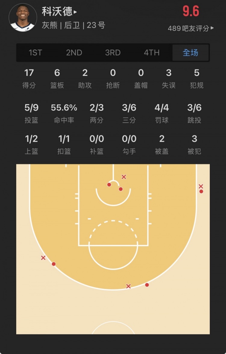 灰熊11號秀 錫德里克-科沃德 登場30.6分鐘