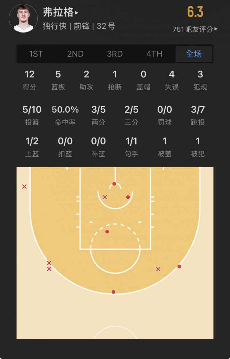 獨行俠狀元秀 庫珀-弗拉格 登場24.3分鐘