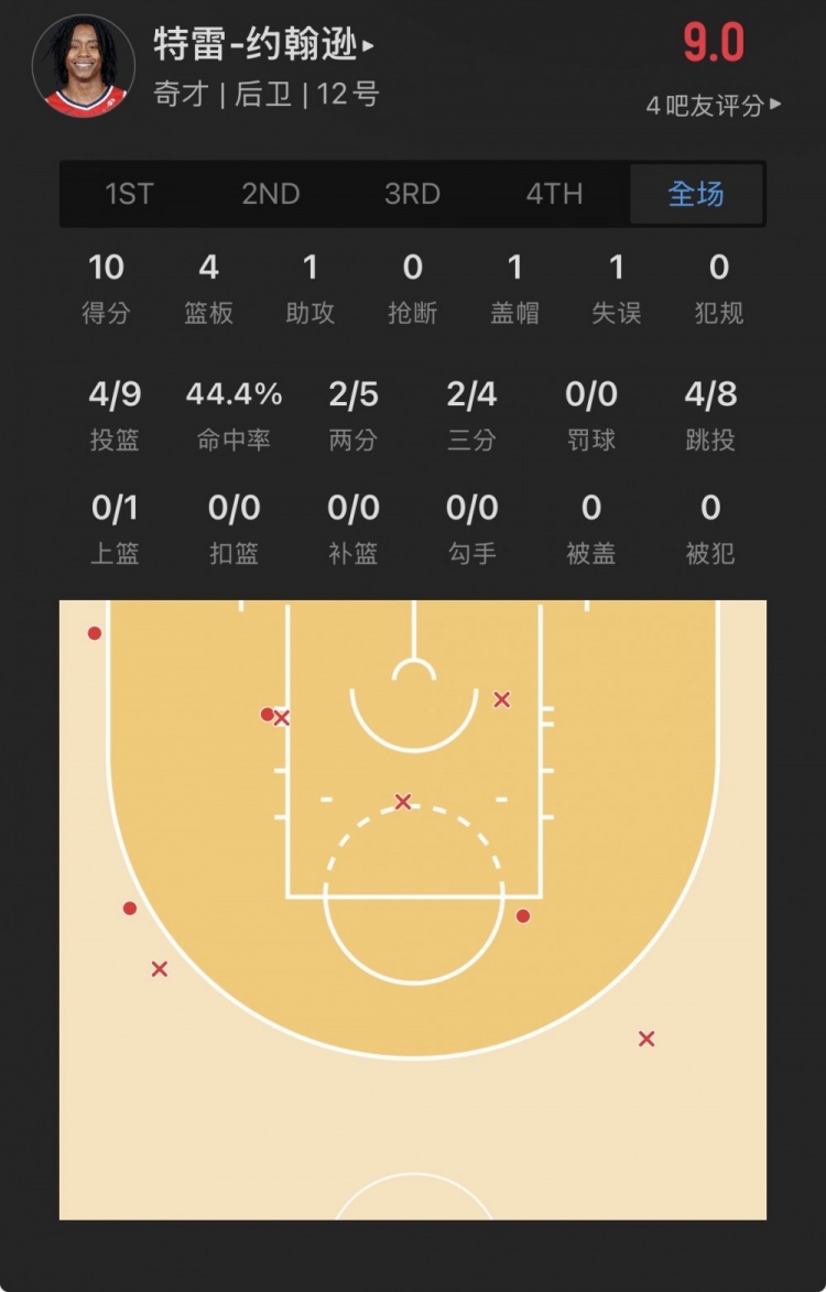 奇才6號秀 特雷-約翰遜 登場21.1分鐘