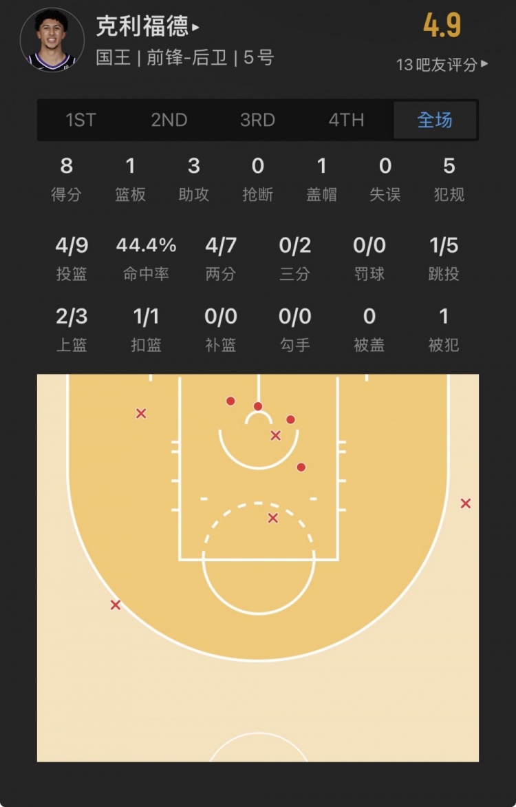 國王24號秀 尼克-克利福德 登場18.6分鐘
