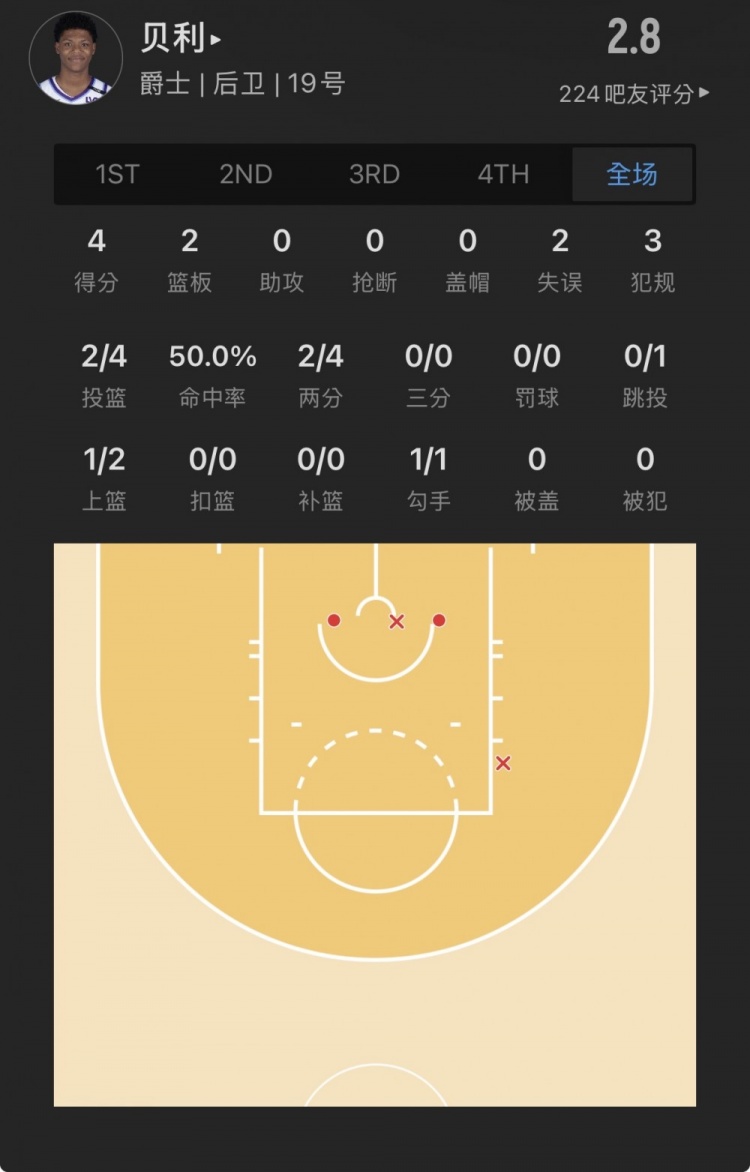 爵士5號秀 埃斯-貝利 登場18.2分鐘