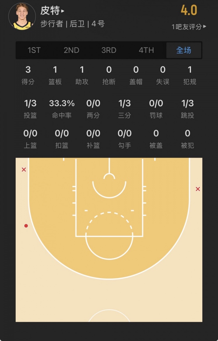 步行者54號秀 泰倫-皮特 登場10.6分鐘