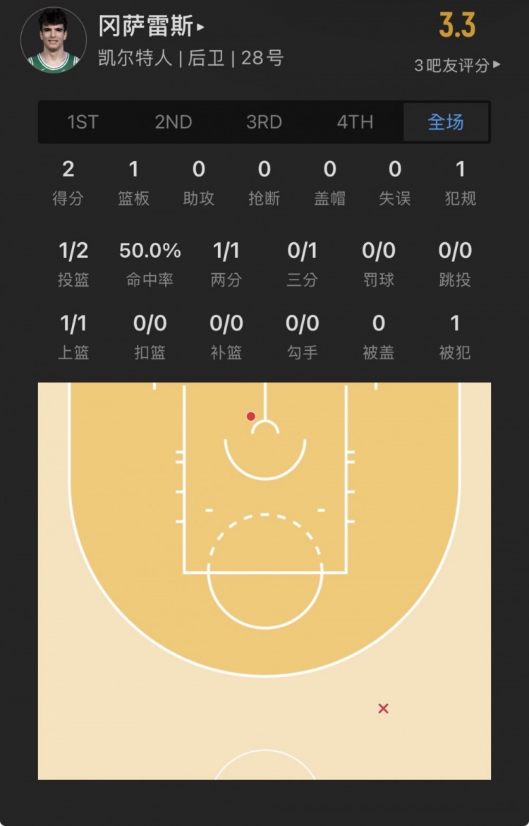 凱爾特人28號秀 烏戈-岡薩雷斯 登場8.0分鐘