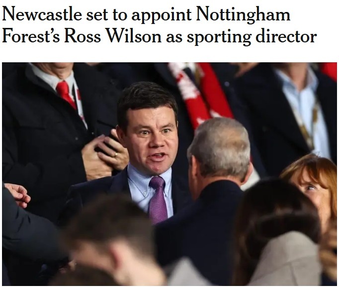 10月11日訊 The Athletic報(bào)道,紐卡斯?fàn)柤磳⑷蚊Z丁漢森林的足球總監(jiān)羅斯-威爾遜擔(dān)任新任體育總監(jiān)。