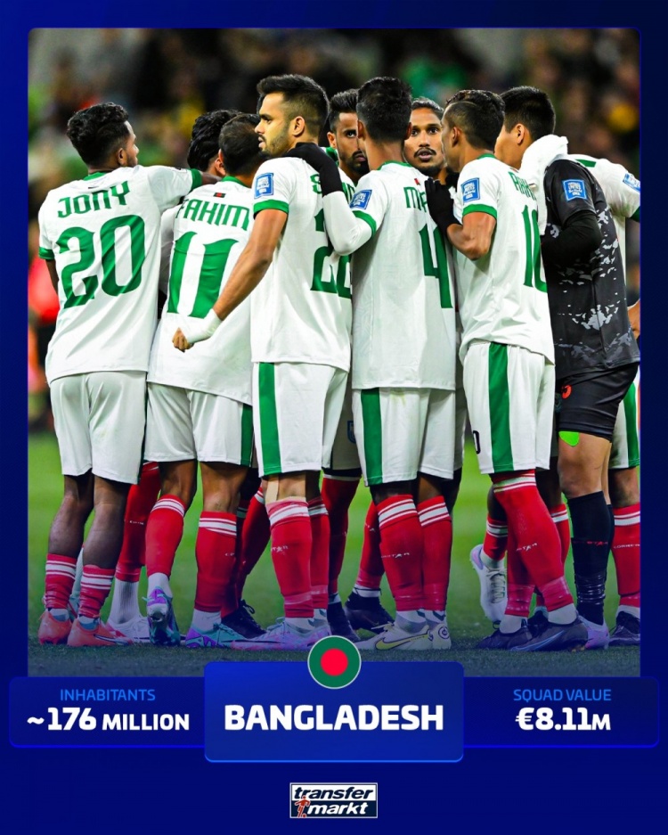 孟加拉國——人口1.76億——國家隊身價811萬歐