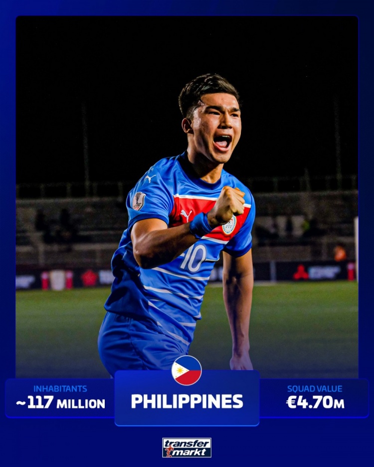 菲律賓——人口1.17億——國家隊身價470萬歐