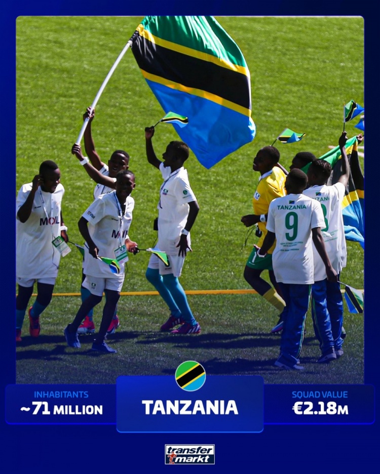 坦桑尼亞——人口7100萬——國家隊身價218萬歐