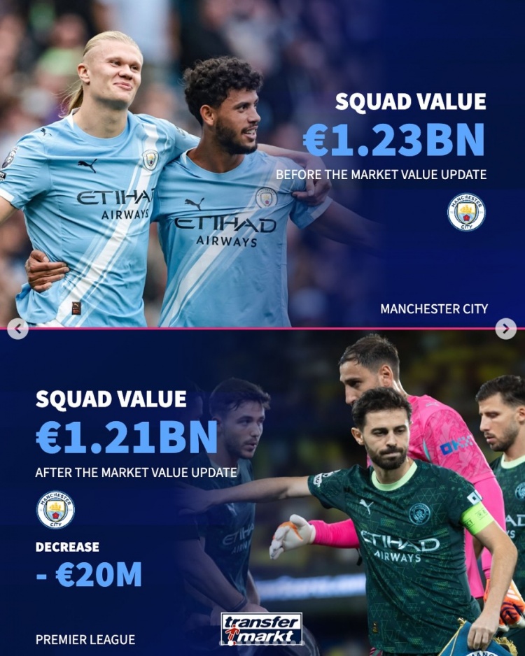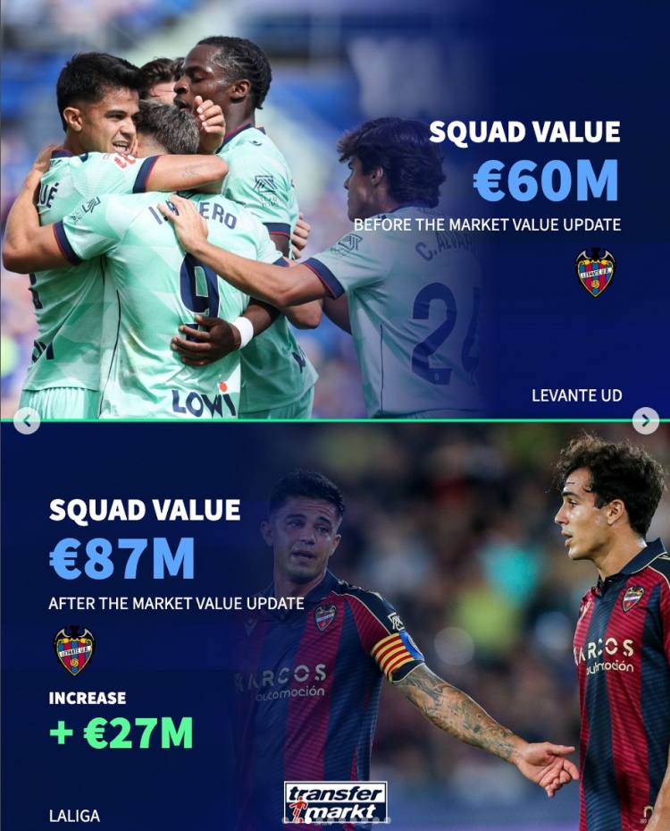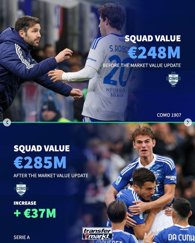 10月27日訊 《轉(zhuǎn)會市場》在近日已經(jīng)更新了五大聯(lián)賽球隊身價,他們也據(jù)此列出了各大聯(lián)賽最新身價更新后的身價(歐元)上漲和下降最多的球隊。